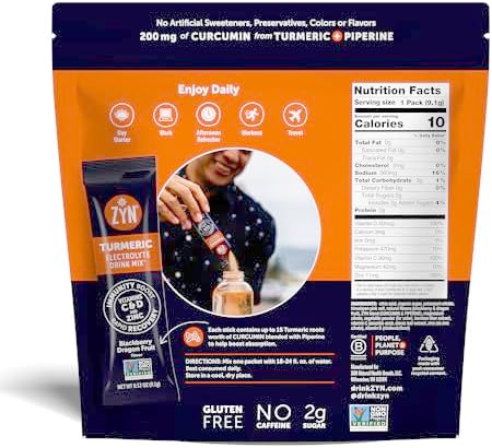 - 200MG OF CURCUMIN FROM TURMERIC: Every wellness formula drink mix contains 200mg of Curcumin from Turmeric and Piperine (black pepper) to optimize absorption. Feel the benefits throughout your body. ZYN electrolyte powder also helps support joint health, and gut health.